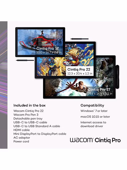 Bonus software: Register your Cintiq Pro & receive a 3-month trials of Clip Studio Paint EX, Toon Boom Harmony & Storyboard Pro, Bluescape, Shapr3D; and MASV file transfer service; Offer available for customers
